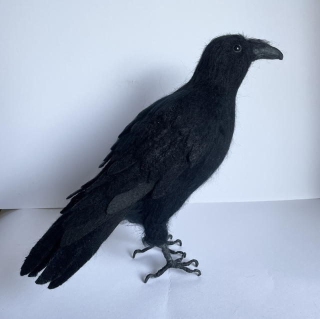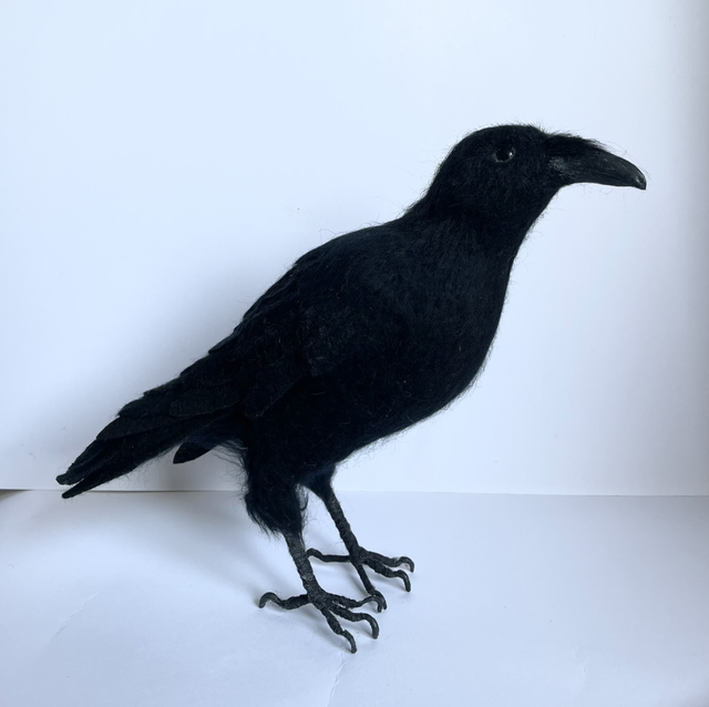 This crow (Corvus Corone) has been lovingly handmade using the dry needle felting technique, which involves using special barbed needles to sculpt the wool into shape.