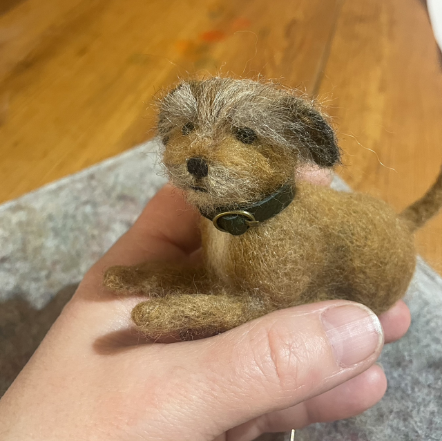 Thank you Sophie's friend. This little guy was a dream to make! He took 7+ hours and I returned to him the next morning, after meeting him in my dreams and being shown he needed bigger eyebrows and a collar. I am definitely happier making dogs than cats although my home is full of furry felines.