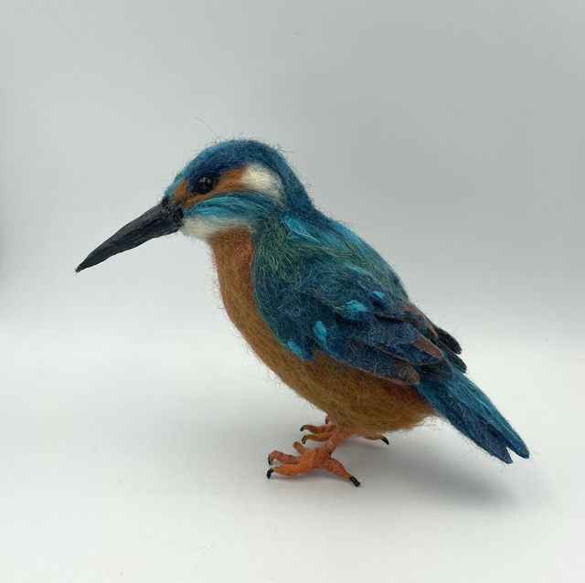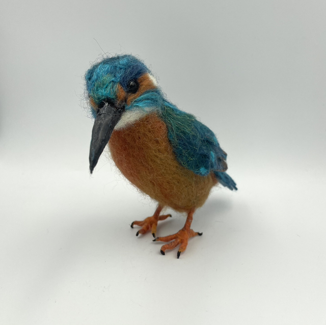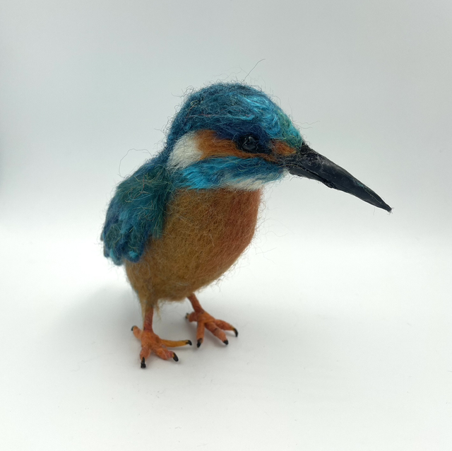 This kingfisher has been lovingly handmade using the dry needle felting technique, which involves using special barbed needles to sculpt the wool into shape.